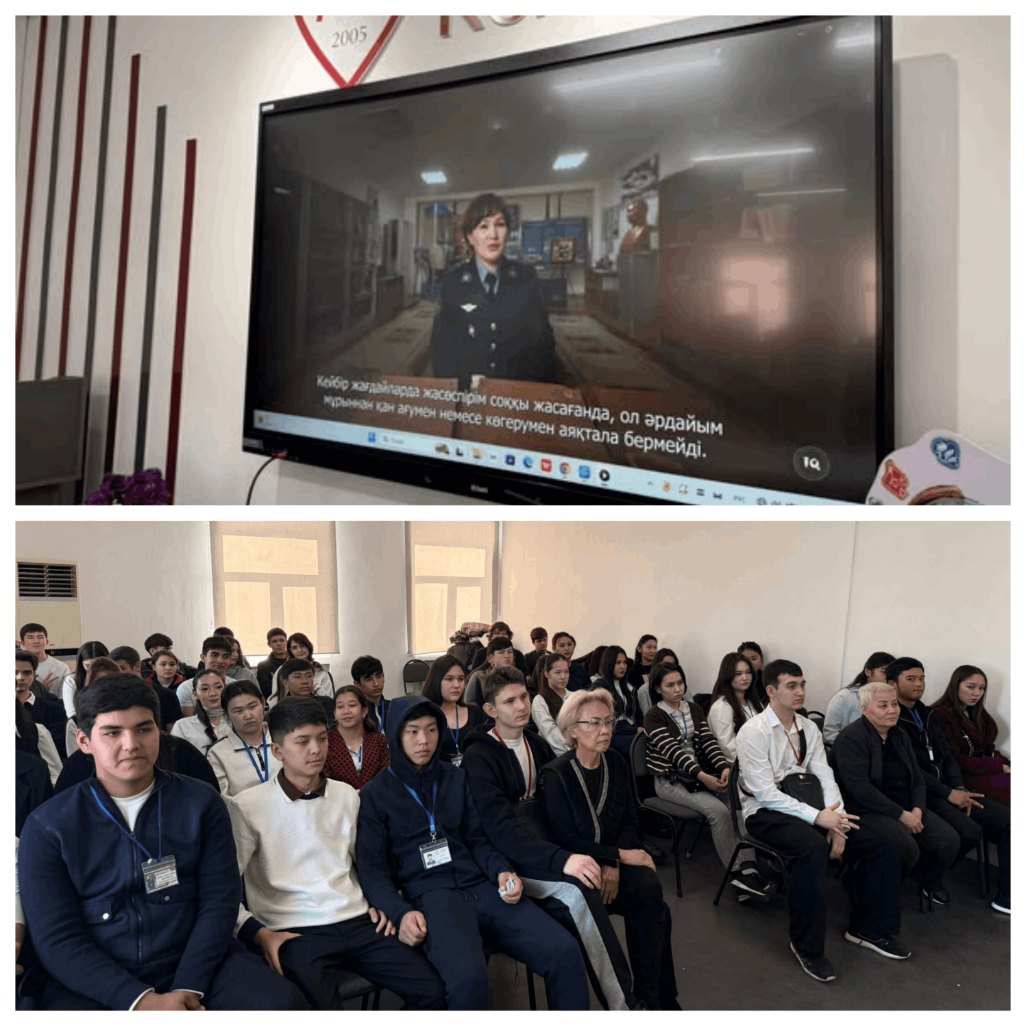 Колледж студенттеріне Шымкент қаласының білім басқармасы Қазақстан Республикасы Оқу-ағарту министрлігінің 2026 жылғы 5 ақпандағы тапсырмасына сәйкес, «Кітап бетбелгілері емес» және «Хулиганка» қысқаметражды деректі фильмдері көрсетіліп, барлық колледж студенттерін қамтыды.