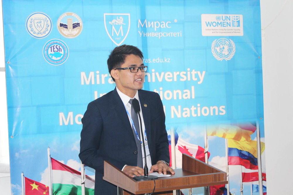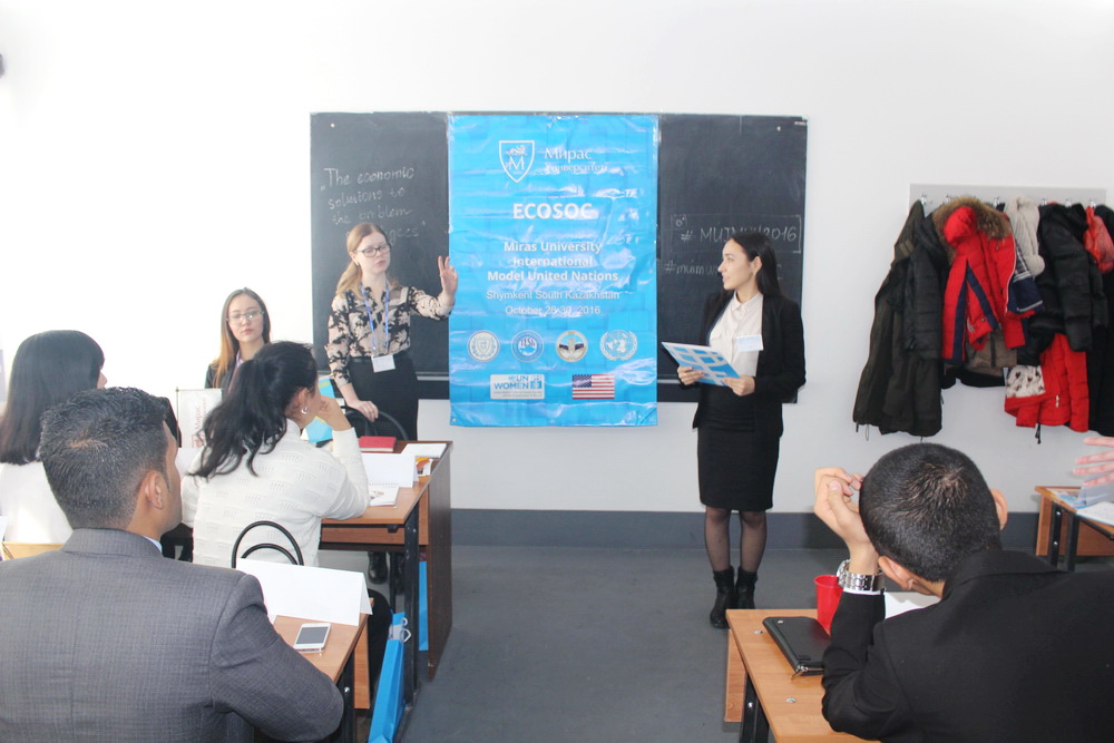 Мирас университетінде 28 мен 30 қазан аралығында «Гендерлік зорлыққа қарсы 16 белсенді күн» тақырыбында «БҰҰ моделі» халықаралық конференциясы өтті. Осы конференцияда қазақстандық студенттерден бөлек Түркия, Ауғанстан, Түркменстан және Рессей елінің жас делегаттары қатысты. Жұмыс алты комитет бойынша ұйымдастырылды, әр комитетте талқылау үшін жаһанды тақырыптар қозғалды. Әр елдің жас уәкілдері жиналып, мәмілегер рөлінде өздерін сезініп, БҰҰ күн тәртібінде тұрған сұрақтарды талқылап,әлемді жақсы жағынан өзгерту үшінөз пікірлерімен бөлісіп, талқылауға қатысып,қарар жазып, ресми келіссөздерді жүргізуді үйреніп, әр ел өкілдерінің ортақ жанасу нүктелерін тапты.