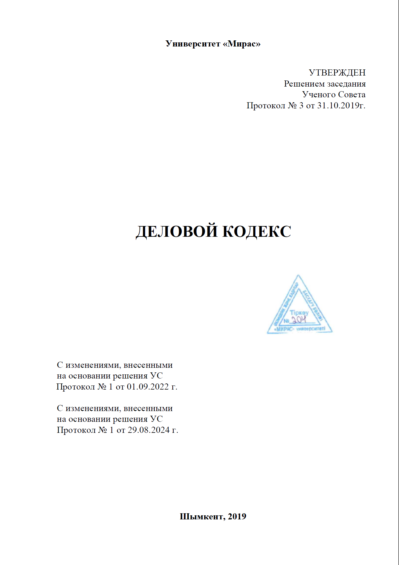 Деловой кодекс университета Мирас