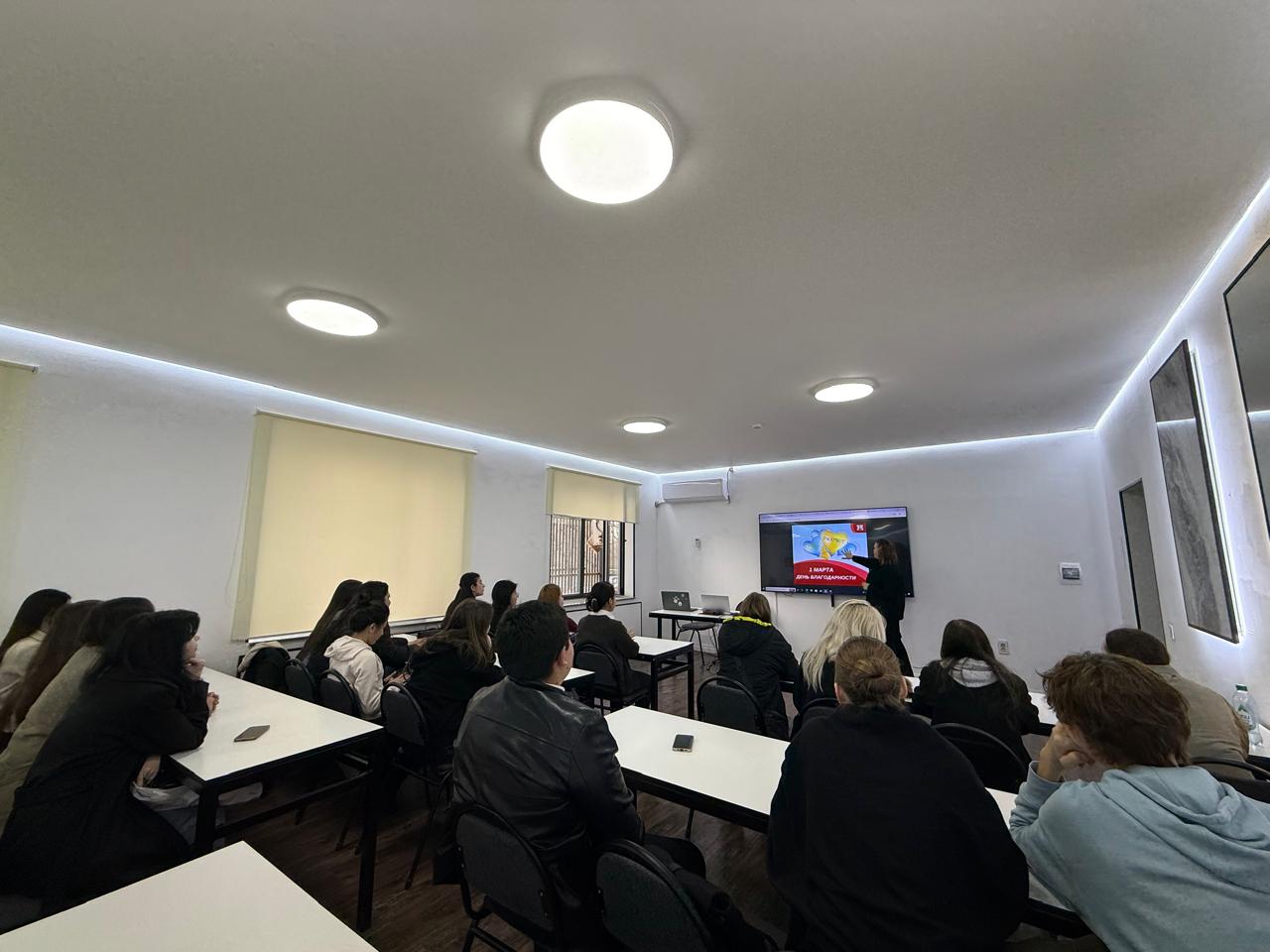 02.03.2026г старший преподаватель сектора педагогики и психологии Колесник К.А. провела открытый тематический час на тему: День благодарности: «традиции взаимопомощи и уважения в Казахстане».