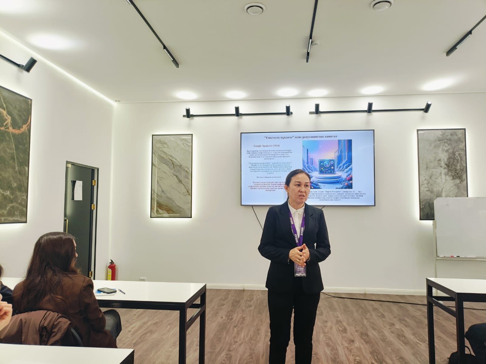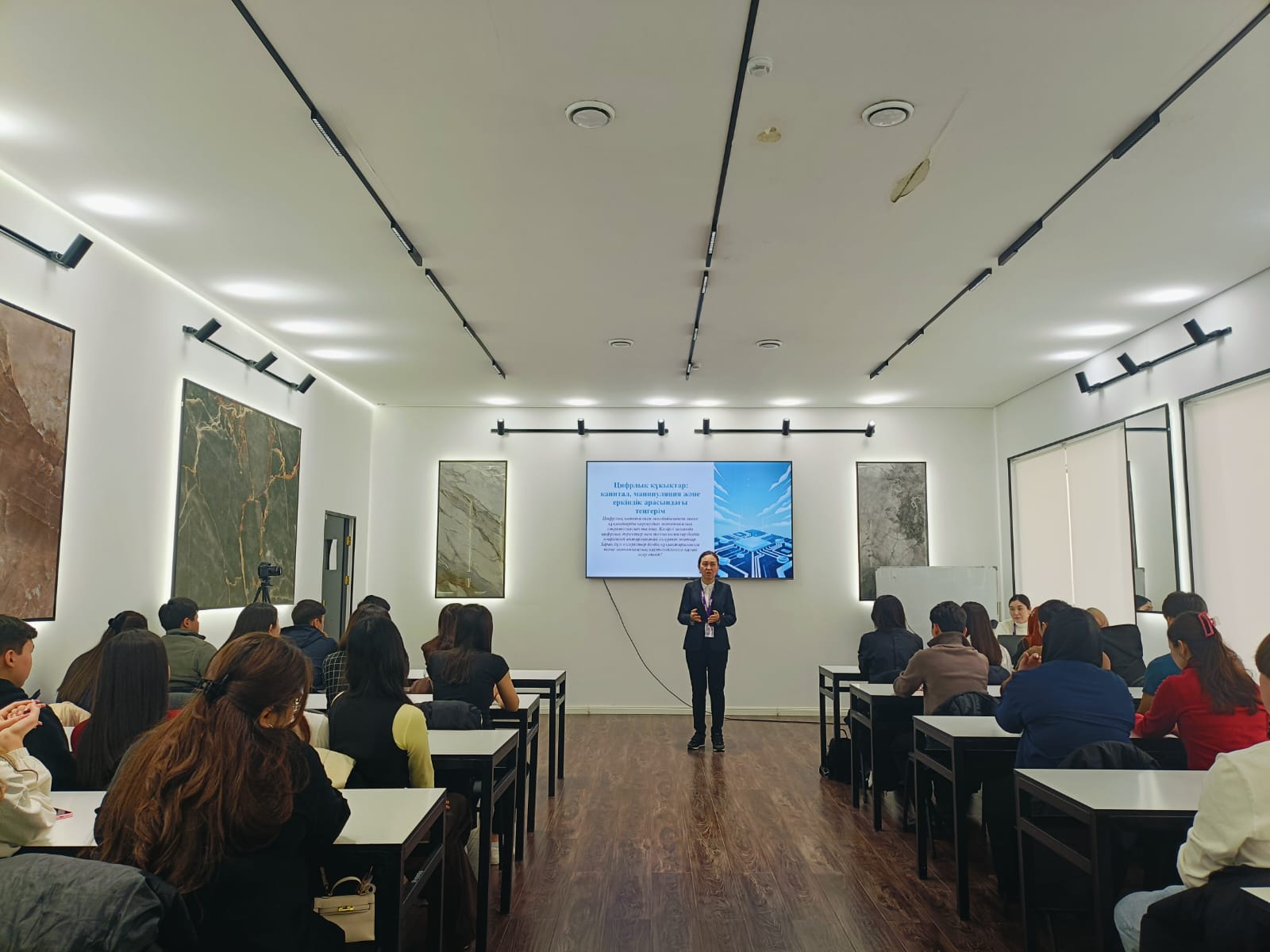 03.03.2026 года в университете «Мирас» PhD, ассоциированный профессор сектора бизнеса, управления и сферы обслуживания Шінет Г.Ғ. провела дискуссию на тему «Цифровые права: закон в онлайн-пространстве» со студентами образовательных программ «Бизнес и финансы», «Учет и аудит», «Экономика и управление», «Менеджмент. Маркетинг. Продажи» и «Туризм. Управление гостеприимством».