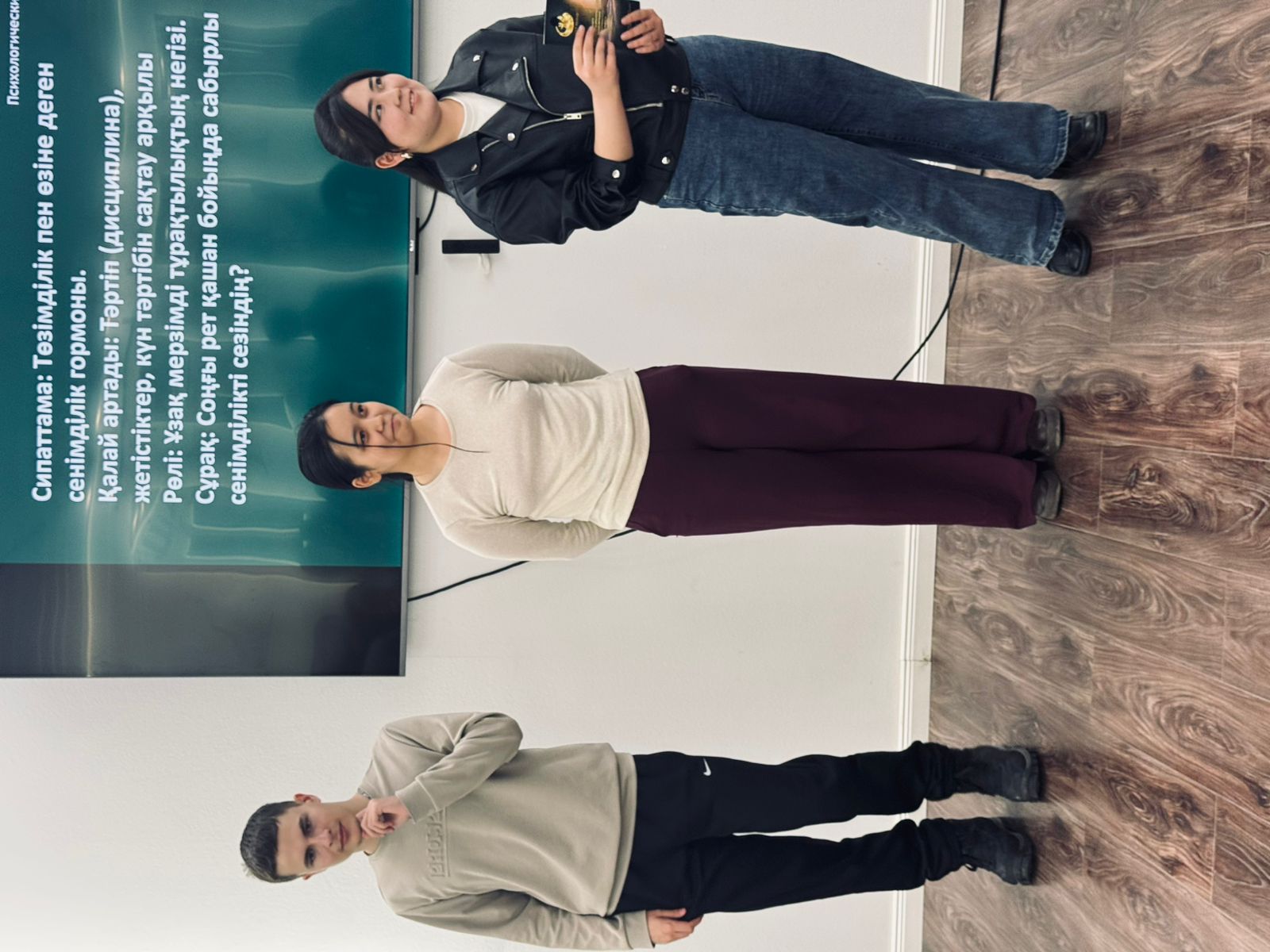 5 марта 2026 года в Университете «Мирас» состоялась открытая лекция-шок «Химия кайфа или кто управляет твоим настроением», организованная Психологическим центром университета. В мероприятии, приняли участие 37 студентов разных специальностей, включая иностранных студентов.