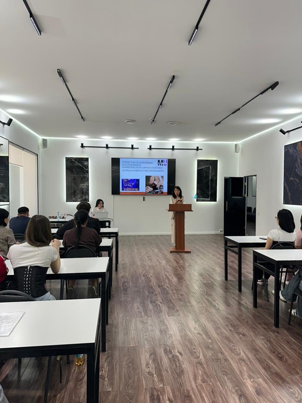 02.04.2026 года в университете «Мирас» состоялась лекция на тему: «Проблемы наркомании: профилактика, лечение, медико-социальная реабилитация наркозависимых и аспекты противодействия незаконному обороту наркотиков». В мероприятии приняли участие преподаватели и обучающиеся университета, а также врач-психиатр, нарколог ГКП на ПХВ «Центр психического здоровья» Управления здравоохранения города Шымкент — Сагиндыкова Балжан Махановна.