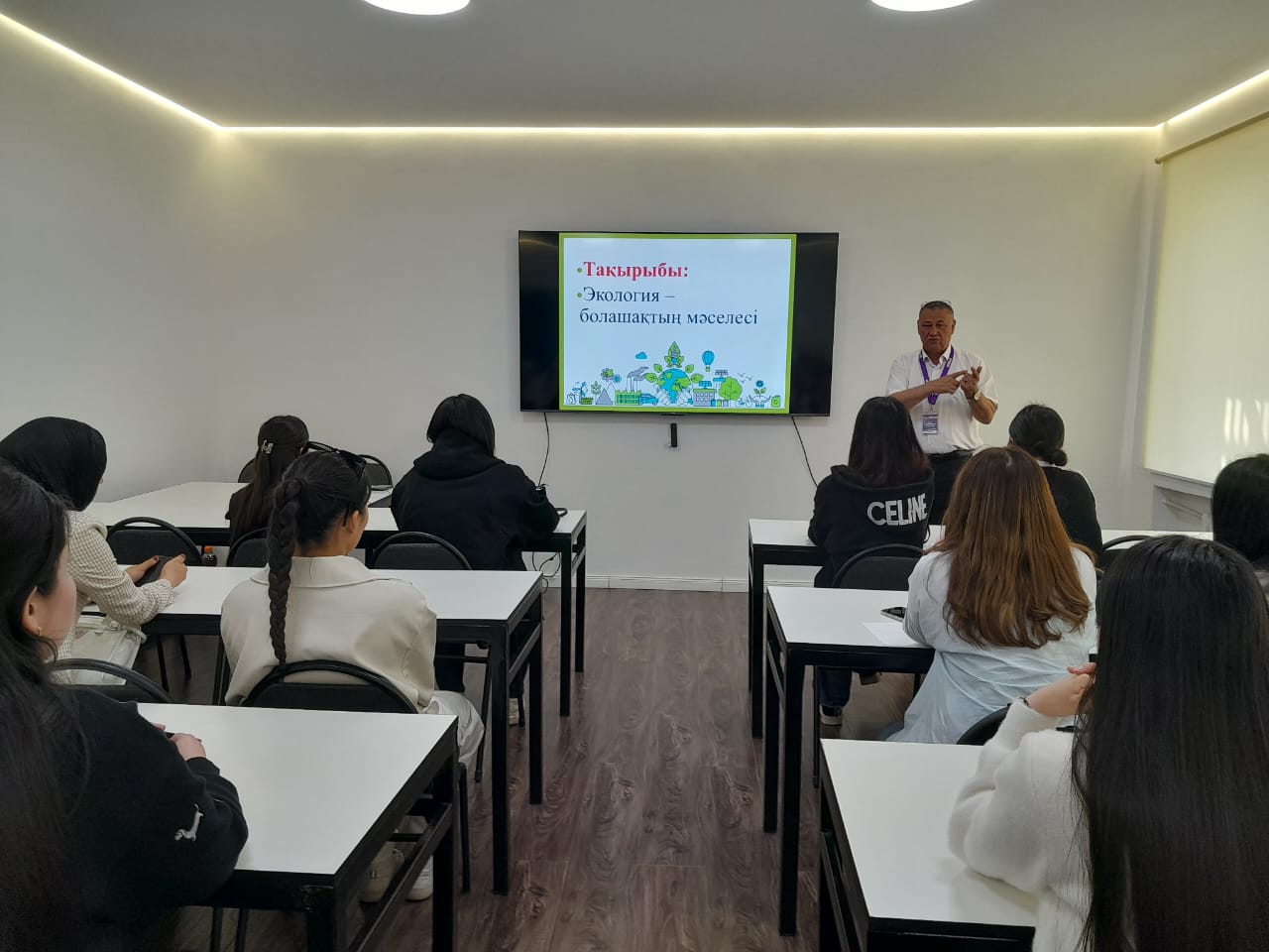 9 апреля 2026 года к.с/х.н., старший преподаватель Бутаев М.Д. провел беседу «Экология – болашақтың мәселесі!» с обучающимися сектора «Естествознание, физическая культура и дизайн».