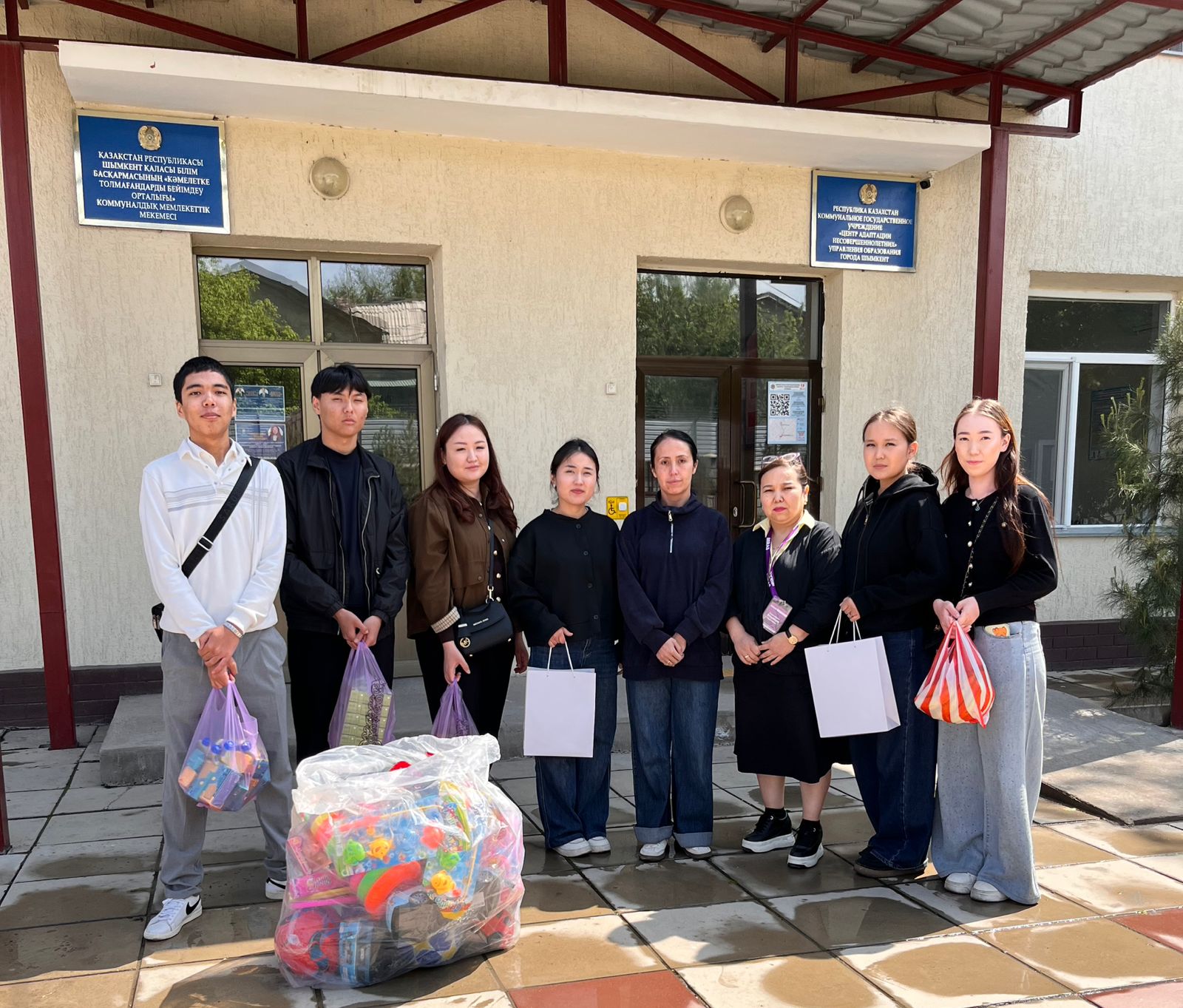 20.04.2026 магистр, старший преподаватель сектора иностранных языков Сырлыбаева Э.М. и магистр, преподаватель Турсуметова Д.И. совместно со студентами 1–2 курсов посетили детский дом — «Центр адаптации несовершеннолетних» Управления образования города Шымкент в рамках темы «Подарим детям радость».