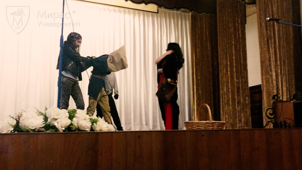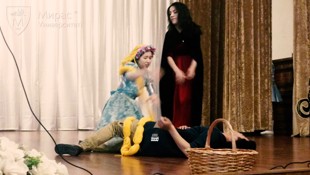 21.04.17 г. студенты 1-3 курса университета «Мирас» специальностей «Иностранный язык: два иностранных языка», «Переводческое дело» в рамках мероприятия «Франкофония 2017», организованной посольством Франции в Казахстане и французским центром Шымкента, поставили спектакль «Рапунцель» и заняли первые места в номинациях: «Самая лучшая интерпретация», «Самые лучшие костюмы» и «Лучшее произношение и лучшее запоминание текста».