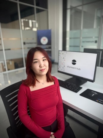 Обучающаяся группы БК-231.2 г по дуальному обучению специальности «Программное обеспечение (по видам)» колледжа «Мирас» Зулпыхарова Хадиша проходит стажировку в учреждении «Шымкент ІТ-HUB», в группе «Amanbaytech», по профессии «Веб-дизайнер».