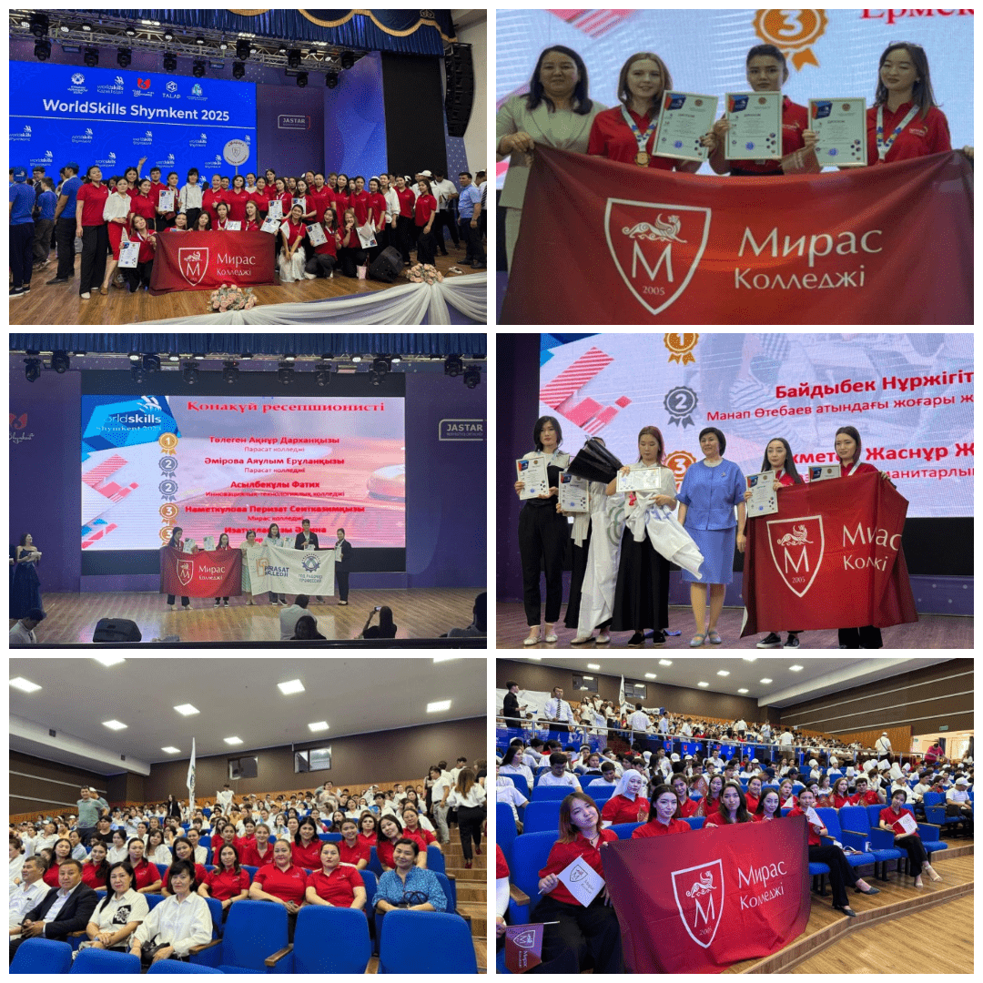 Учреждение колледжа «Мирас» приняло участие 19 участников по 9 компетенциям, занявших призовые места.