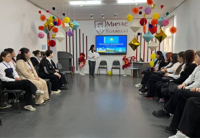В учреждении «колледжа «Мирас» 24 октября 2025 года был проведён воспитательный час на тему «Қыран елім – Қазақстаным», посвящённый Дню Республики и 35-летию Декларации о государственном суверенитете Казахстана. Это мероприятие вдохновило студентов на чувство патриотизма и позволило прочувствовать ценность независимости страны.