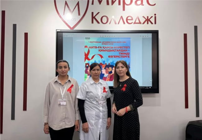 Сегодня в учреждении колледжа «Мирас» было проведено санитарно-просветительское мероприятие по профилактике и борьбе со СПИДом. Специалисты представили информацию на тему «Проблемы СПИДа и меры его профилактики» и провели важную разъяснительную работу со студентами.
