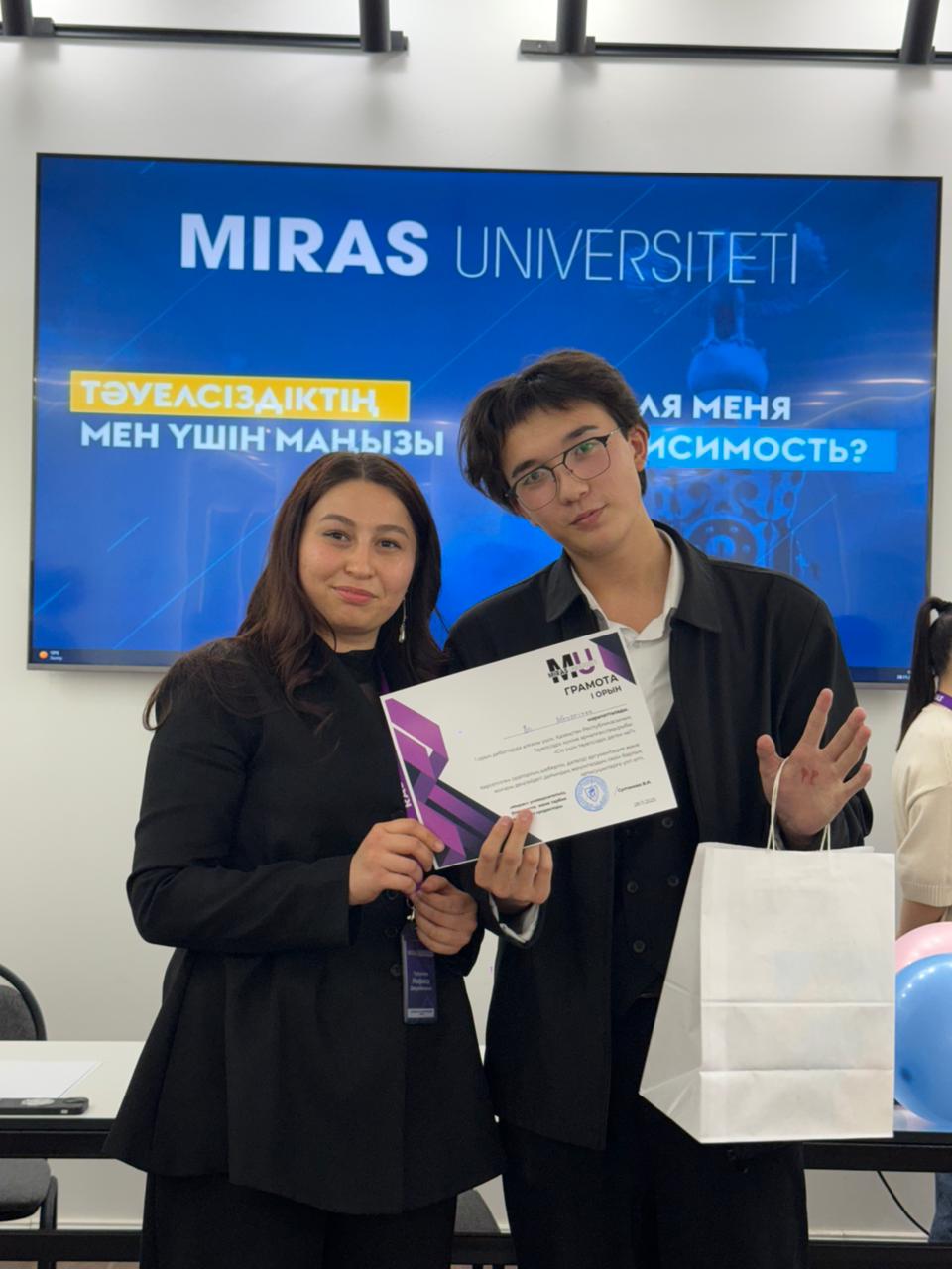 28 ноября 2025 года в университете Мирас в преддверии Дня Независимости Республики Казахстан состоялись дебаты в Л/Д- формате на тему «Что для вас значит Независимость?». Мероприятие было направленно на развитие критического мышления и формирование у студентов осознанного отношения к государственным ценностям.