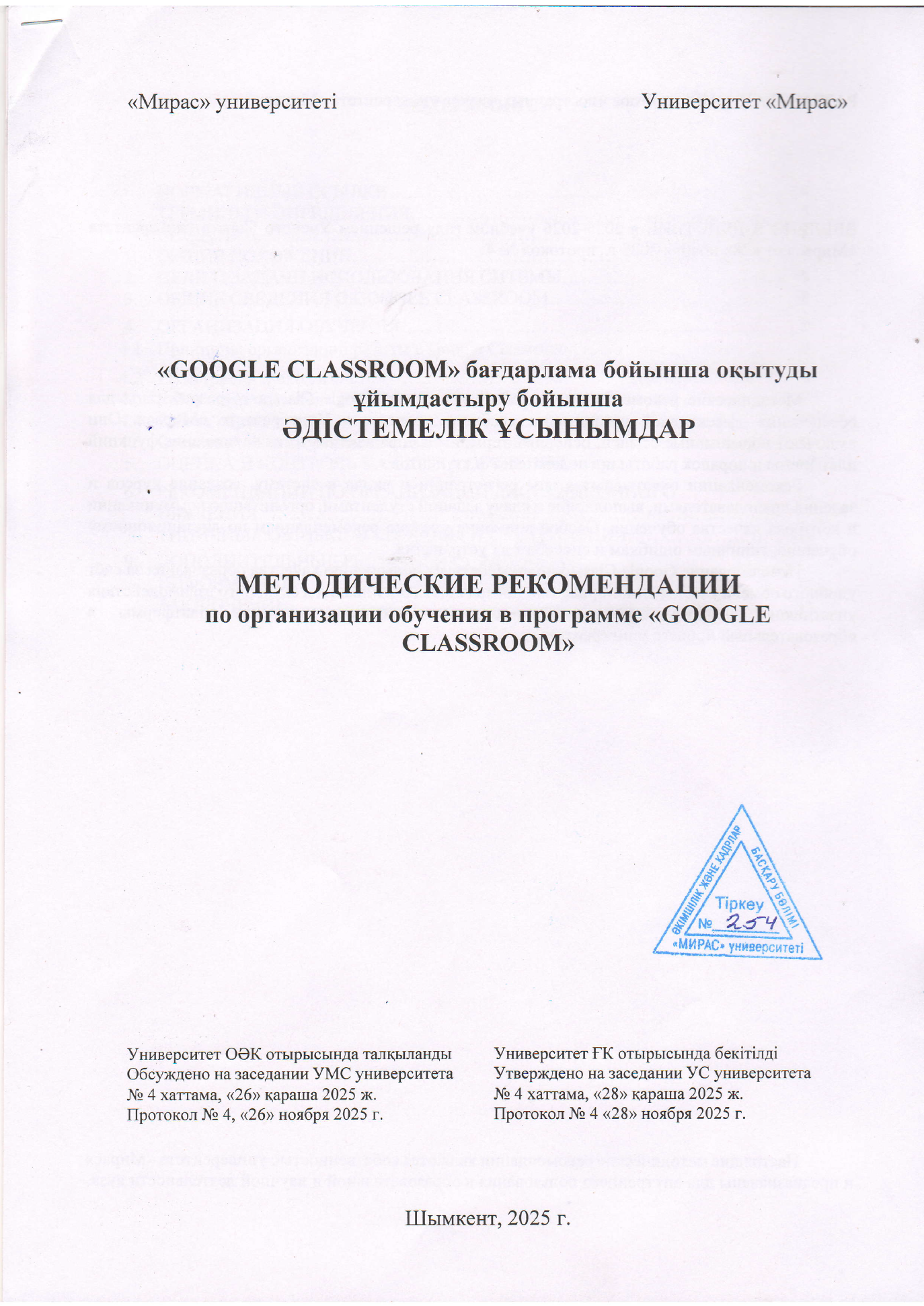 Методические рекомендации определяют порядок и особенности использования системы Google Classroom в учебном процессе Университета «Мирас», а также требования к организации и сопровождению электронных курсов, обеспечивающих реализацию zpsrjds[ дисциплин.