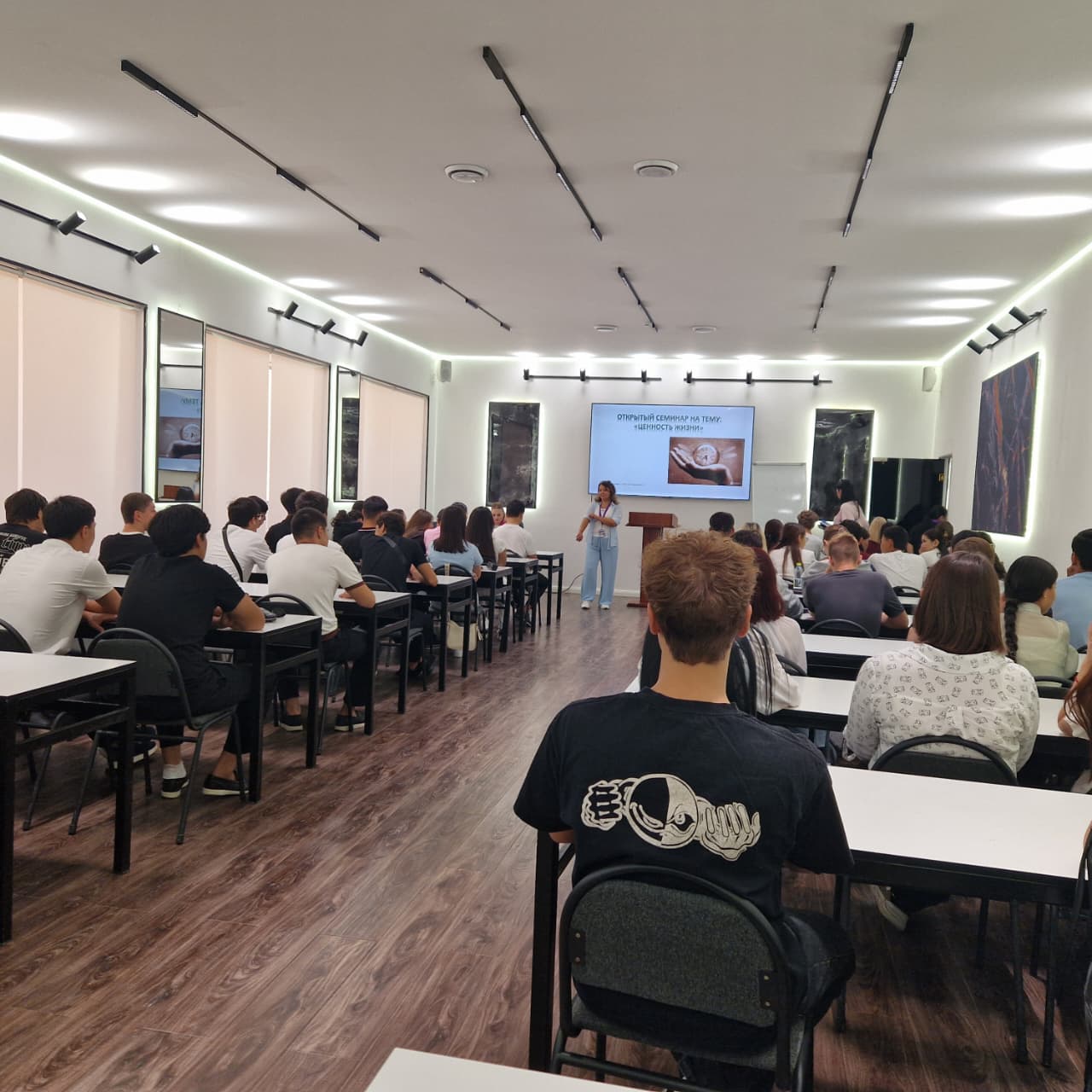 10.09.2025г. в университете «Мирас» со студентами университета был проведён открытый семинар по теме: «Ценность жизни». Ответственные за проведение: психолог, старший преподаватель, Сенова Ю.С., менеджер сектора «Педагогики и психологии» Ешенкулова Д.Б.. В семинаре приняли участие 180 студентов.