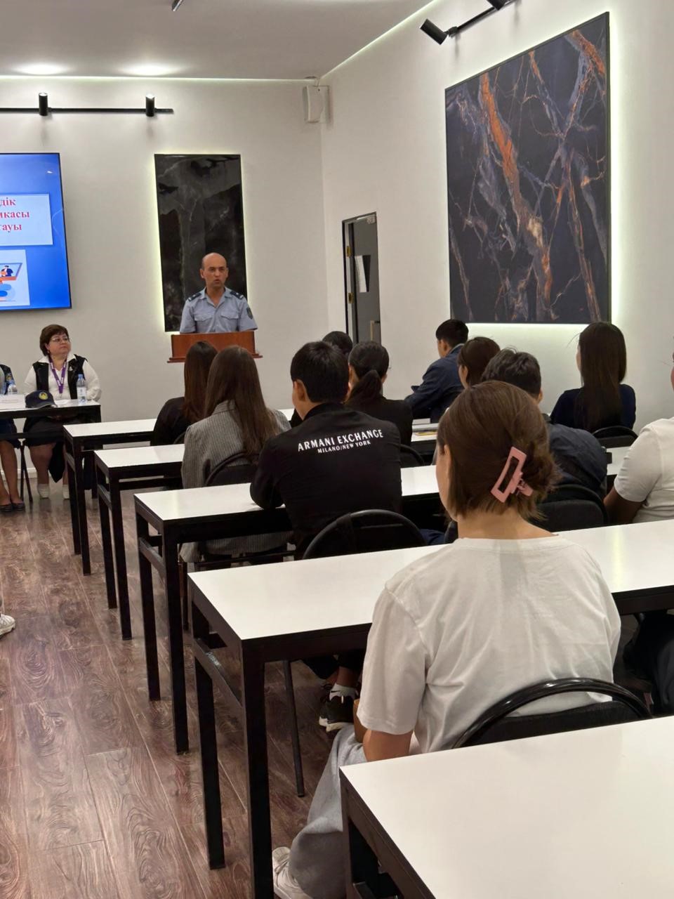 В ходе лекции были подробно обсуждены основные требования действующего законодательства Республики Казахстан, виды административной и уголовной ответственности, обязанности студентов перед учебным заведением и обществом, а также вопросы соблюдения миграционного законодательства.