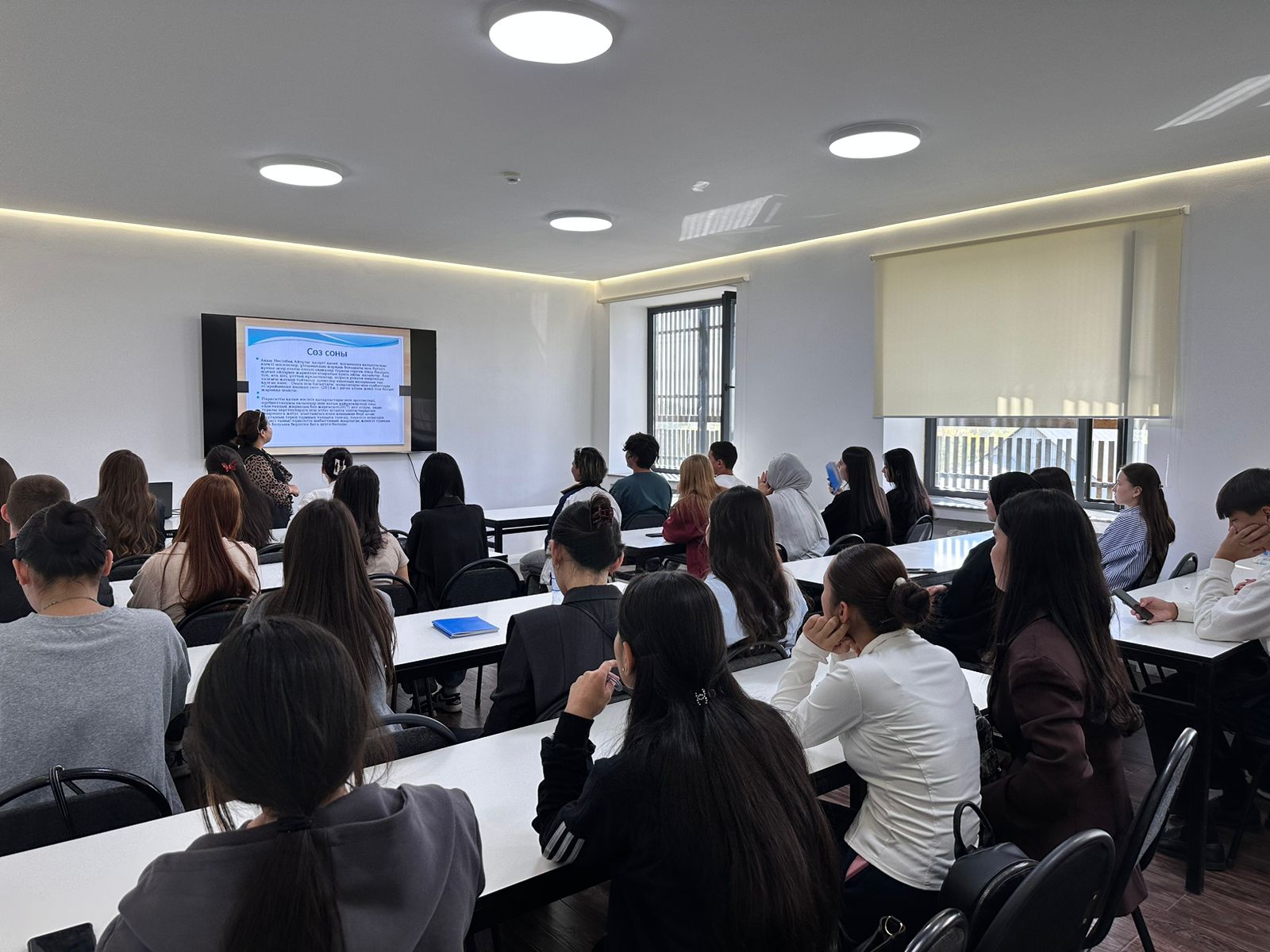 Преподаватель Сырлыбаева Э.М. рассказала студентам о вкладе Несипбека Айтулы в казахскую литературу, его ярких поэтических произведениях и трудах в области перевода. Также были обсуждены темы национального духа, нравственных ценностей и важности сохранения национальной идентичности в творчестве поэта.