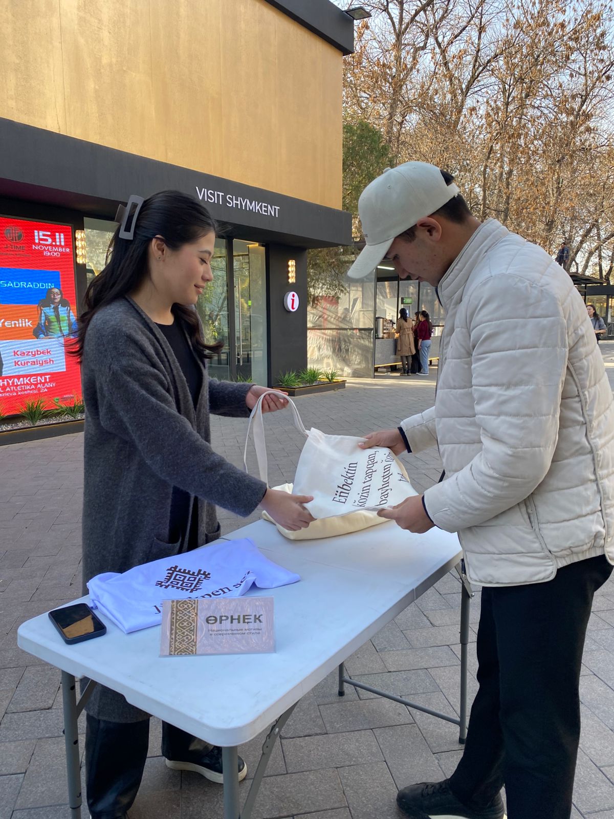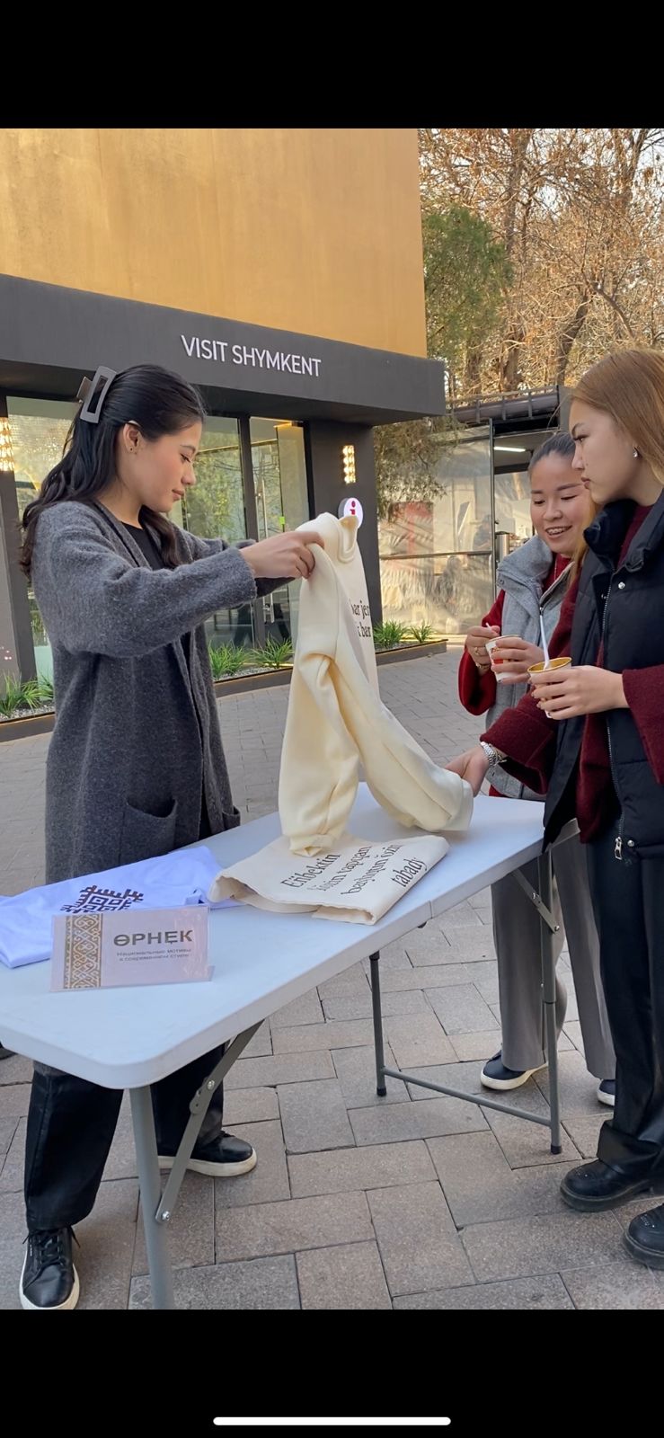 - Өрнек - молодежная одежда с национальными орнаментами и цитатами казахских деятелей. В рамках проекта студенты осваивают процессы разработки коллекций, анализа спроса, позиционирования продукта и взаимодействия с аудиторией.