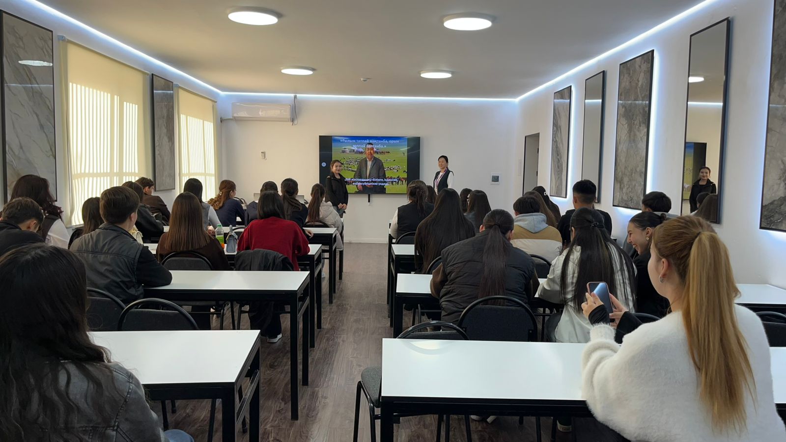 12.11.2025 г. магистр, старший преподаватель сектора педагогики и психологии Алибекова А.А. провела со студентами беседу на тему: «Вечные ценности в наследии Абая Кунанбаева».