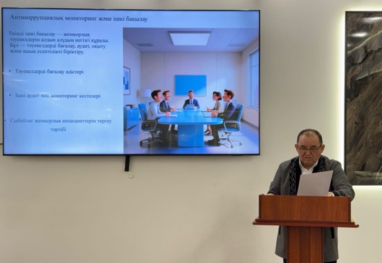 14 ноября 2025 года в Университете «Мирас» состоялся семинар по антикоррупционному законодательству для сотрудников и ППС на тему «Правовое регулирование и ответственность за коррупционные правонарушения в рамках антикоррупционного законодательства». Мероприятие провёл кандидат юридических наук, старший преподаватель Б. Е. Имашев.