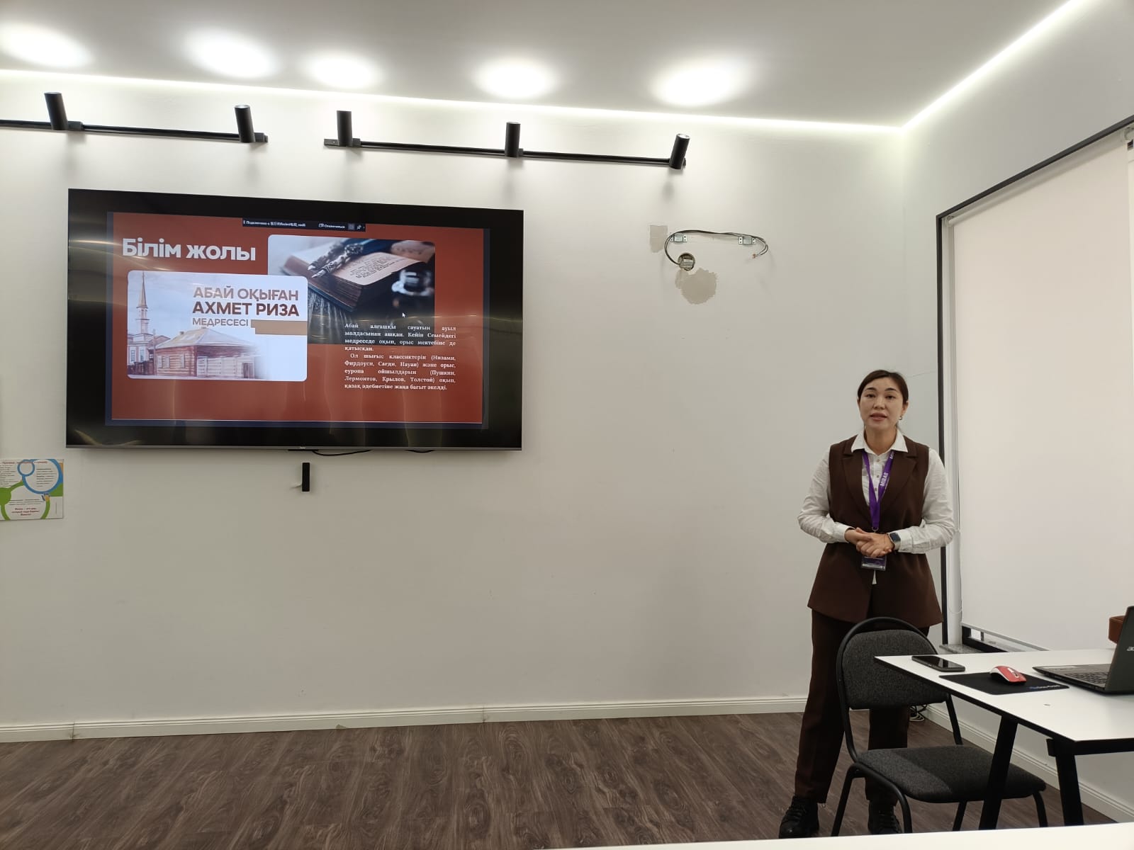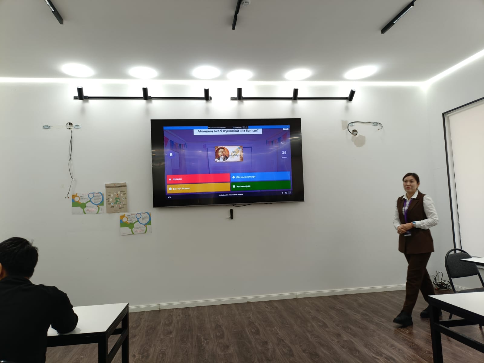 В завершение мероприятия студенты прошли интерактивную викторину на платформе Kahoot, отвечая на вопросы, посвященные жизни и творчеству Абая. Такой формат не только повысил интерес участников, но и позволил оперативно и объективно оценить уровень усвоения темы.