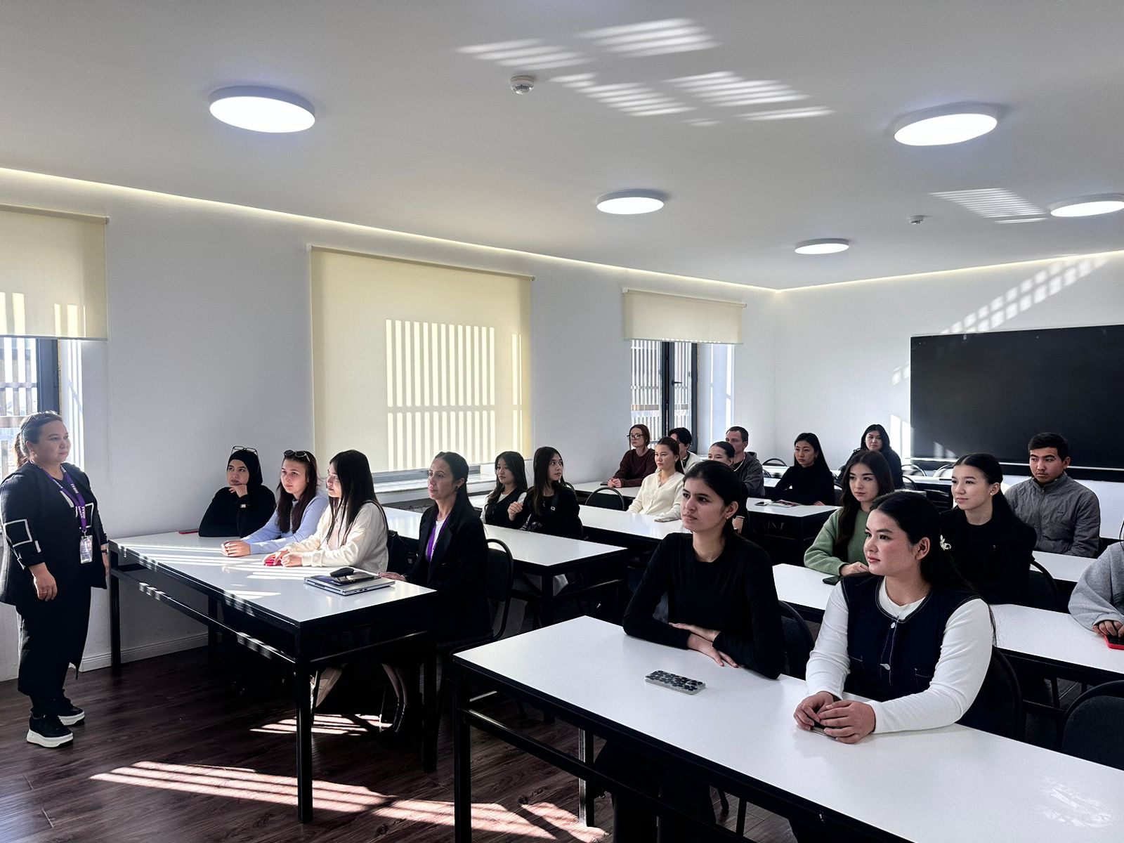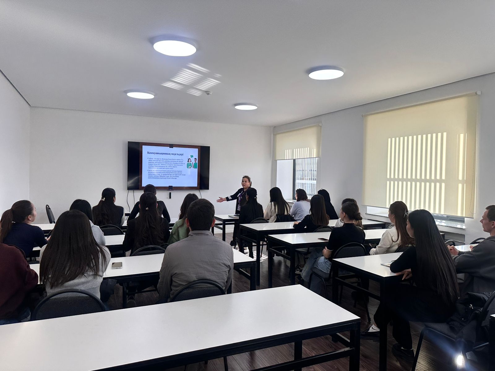 25.11.2025 старший преподаватель сектора иностранных языков университета Мирас Сырлыбаева Э.М. провела презентацию для студентов 1 курса на тему «Коммуникация — ключ к успеху в учёбе и карьере».