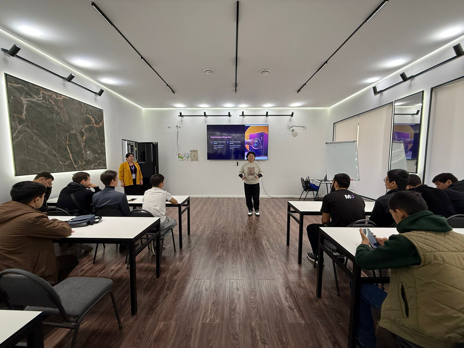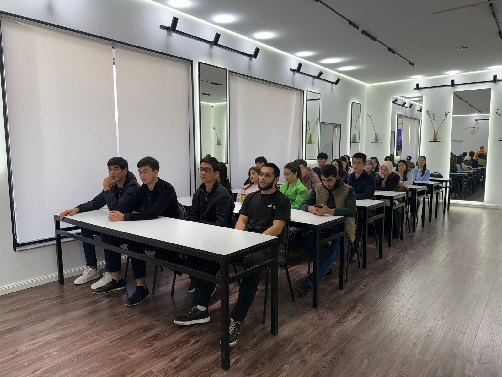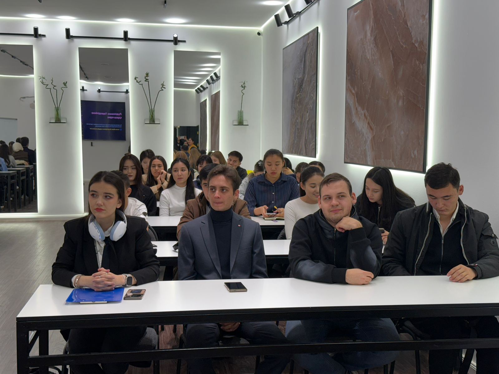 Приглашённый психолог-тренер Атаева Жанат Калназарқызы провела интерактивное упражнение «Здесь и сейчас», направленное на осознание собственных эмоций, внутренних потребностей и текущего психоэмоционального состояния студентов. Были предложены эффективные способы борьбы с тревожностью, особенно актуальные в период экзаменационной нагрузки.