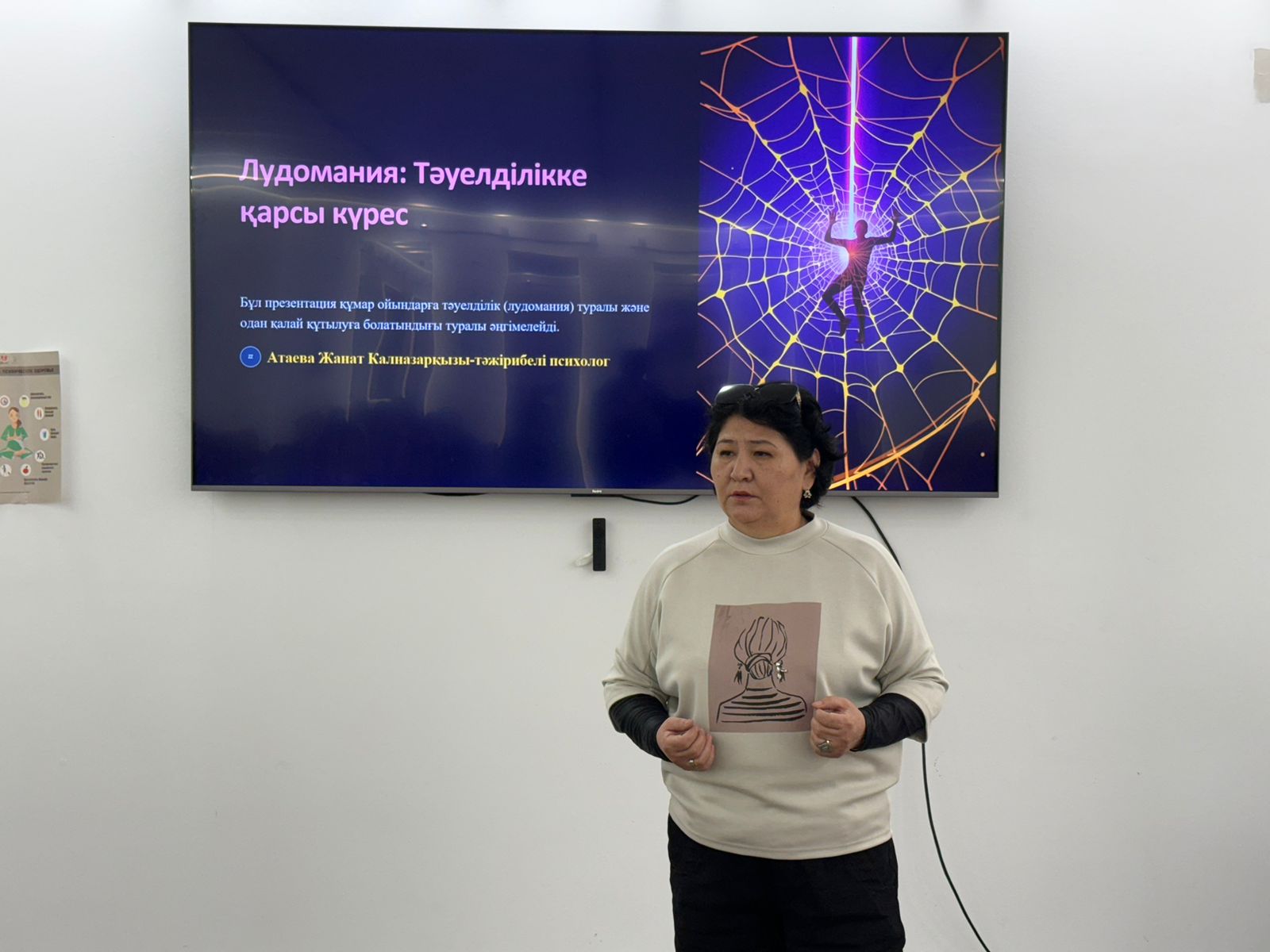 28.11.2025 г. на секторе иностранных языков состоялась встреча с практическим психологом-тренером центра практической психологии «BOLMYS», психотерапевтом кризисных ситуаций, коучем, специалистом по арт-терапии, автором книги «Ой және Сөз арқылы өмірімді жақсы жағына өзгерттім» – Атаевой Жанат Калназарқызы. Тема встречи: «Выбор за тобой: жизнь без зависимости».