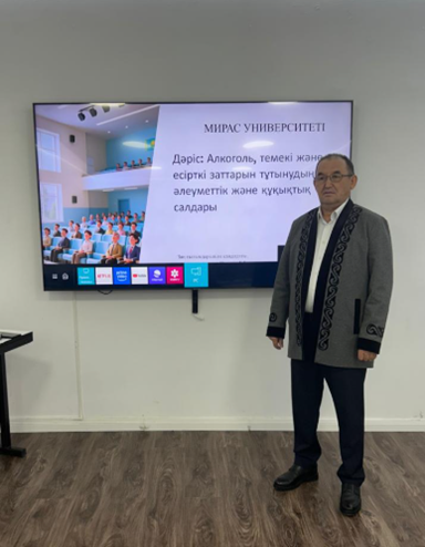 10 ноября 2025 года в Университете «Мирас» старший преподаватель сектора права, кандидат юридических наук Имашев Ботабек Есенбекович провёл лекцию на тему: «Социальные и правовые последствия употребления алкоголя, табака и наркотических средств».