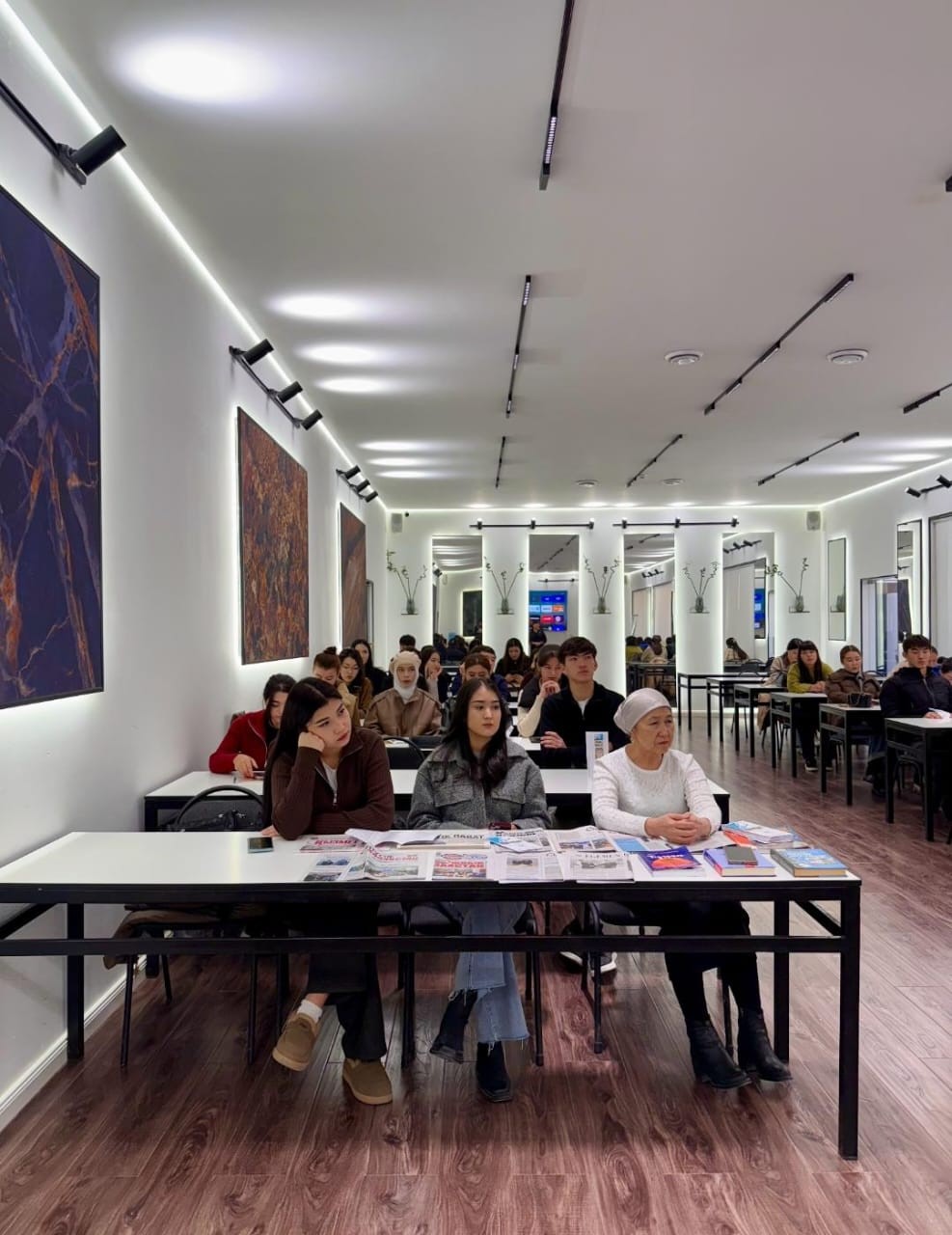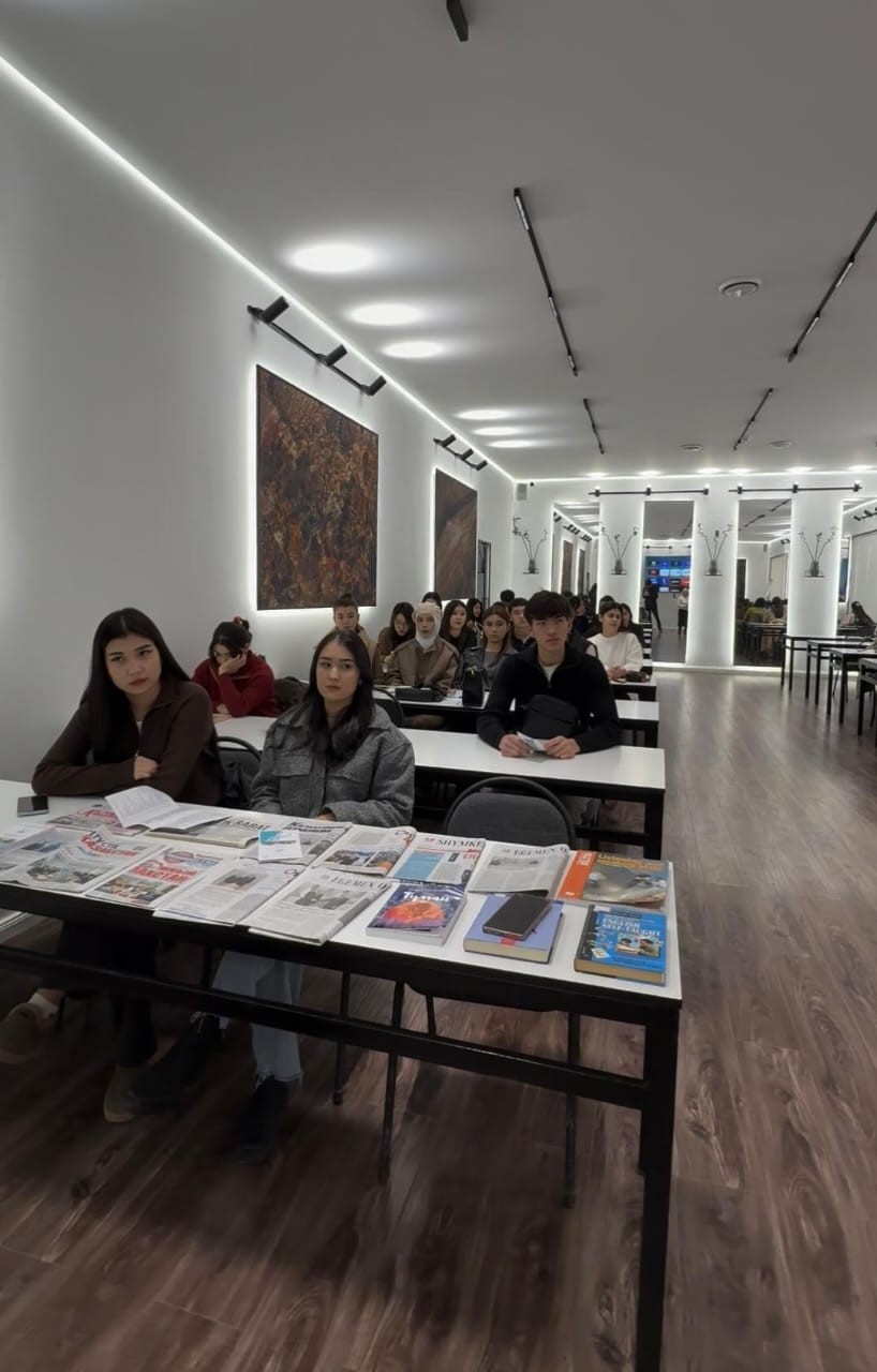 24.11.2025 года сотрудники городской научно-универсальной библиотеки имени Аль-Фараби провели в Университете «Мирас» презентацию новых поступлений — периодических изданий и книг — для студентов.