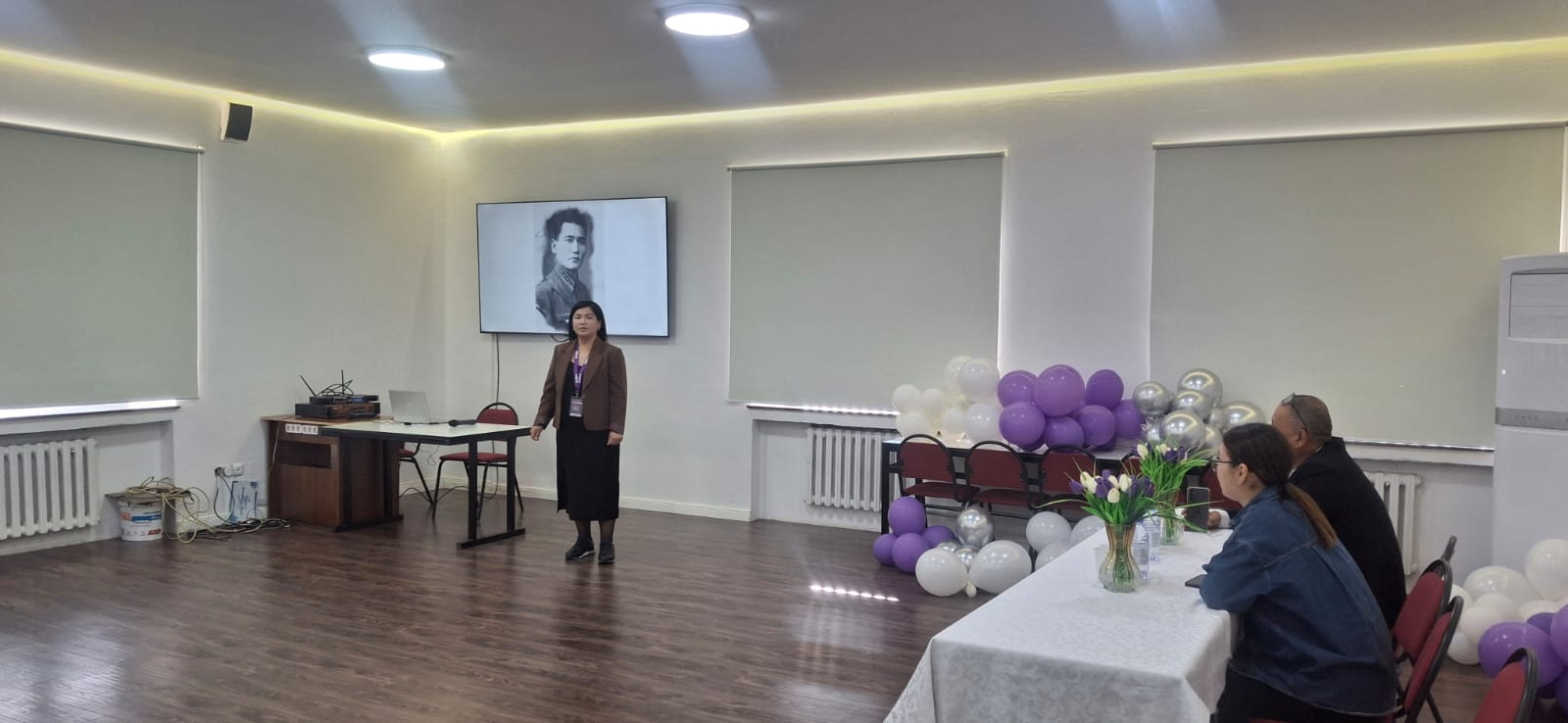 03.12.2025 г. старший преподаватель сектора «Естествознания, физической культуры и дизайна» Есенбекова А.Ш. в честь 115-летия Б. Момышулы провела с обучающимися открытый тематический час «Ұрпақ үшін рухы биік Бауыржан!».