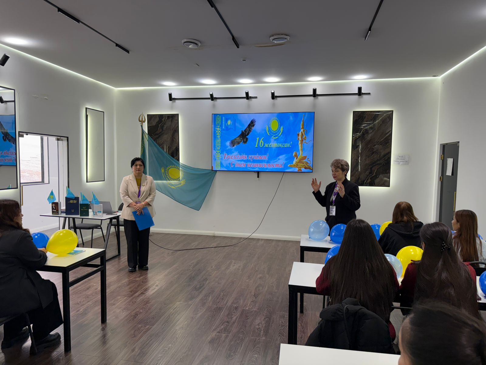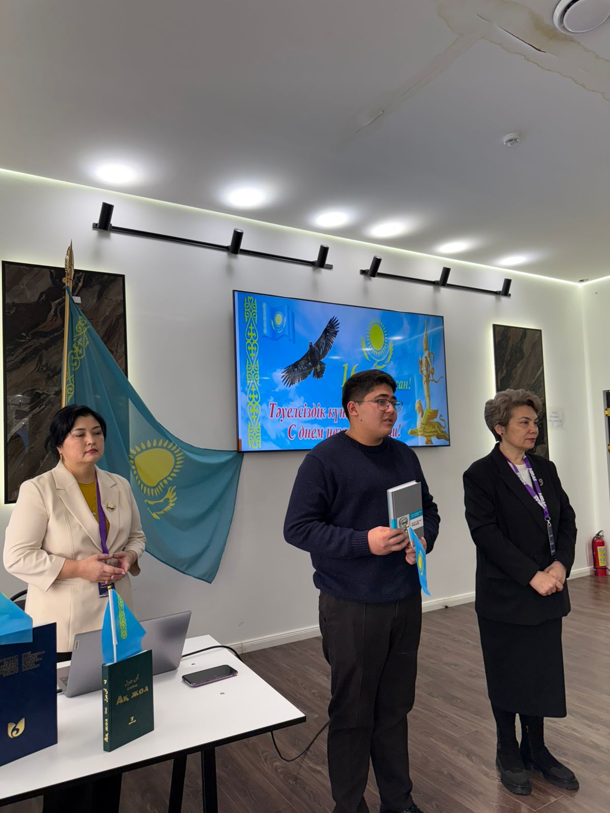 Мероприятие началось с торжественного исполнения Государственного гимна Республики Казахстан. Со вступительным словом выступила проректор по социальной и воспитательной работе, которая поздравила студентов с Днём Независимости, отметив важность сохранения национальной культуры и самобытности казахского народа, мира и согласия, а также подчеркнула что непрерывное образование, чтение книг, честный труд являются залогом успеха молодежи и будущего страны.