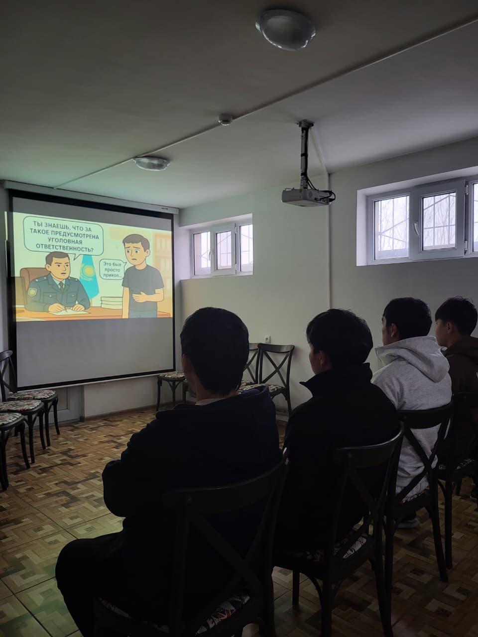 18.12.2025 г. в рамках исполнения поручения акимата г. Шымкент, согласно письма № 23-07-26/1501 от 09.12.2025 Управления внутренней политики был организован показ видеороликов антитеррористической направленности среди студентов при участии проректора по социально-воспитательной работе Султановой В.И. и координатора по воспитательной работе Турсуновой Н.Д., проживающих в общежитиях: ТОО "SunriseCY" по адресу ул. Байтурсынова А. №12/2 и по адресу ул. Кенкешу 4/2. Кроме того, кураторами академических групп была организована работа по демонстрации видеороликов в учебных группах, а также проведён показ видеоконтента в читательском зале.