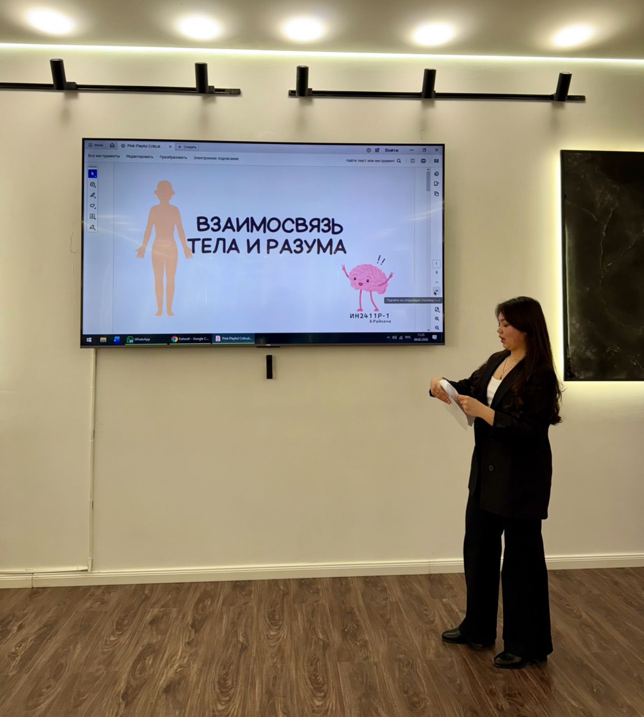 Мероприятие началось с презентации на тему «Тело и разум человека», в ходе которой рассматривались вопросы взаимосвязи физического состояния, ментального здоровья и образа жизни.