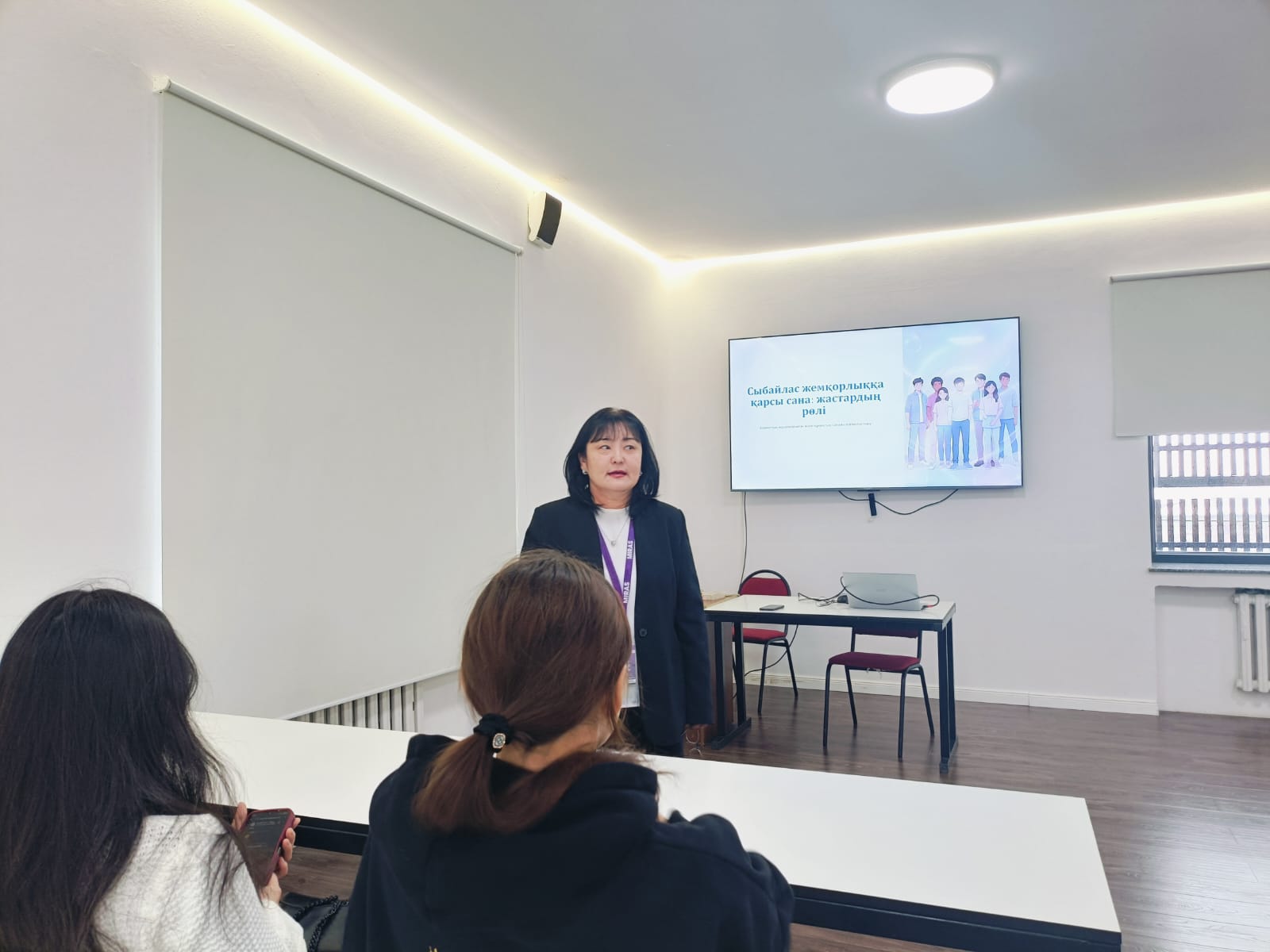 12.02.2026 года к.эк.н., старший преподаватель сектора бизнеса, управления и сферы обслуживания Туребаева Ж.К. провела круглый стол на тему «Антикоррупционное сознание: роль молодежи» со студентами специальностей «Бизнес и финансы», «Менеджмент. Маркетинг. Продажи», «Учет и аудит», «Экономика и управление», «Туризм. Управление гостеприимством».