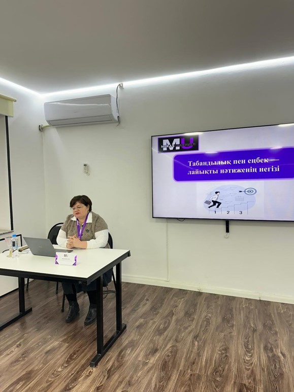 12 февраля 2026 года в университете «Мирас» был проведен открытый тематический час на тему: «Упорство и труд - основа достойного результата». Мероприятие провела старший преподаватель сектора права, к.ю.н. Жаналиева А.Ж.