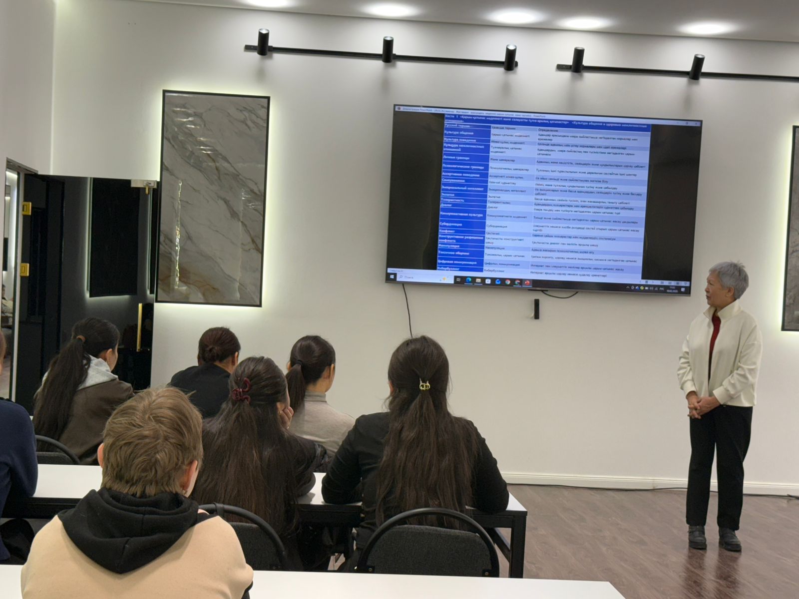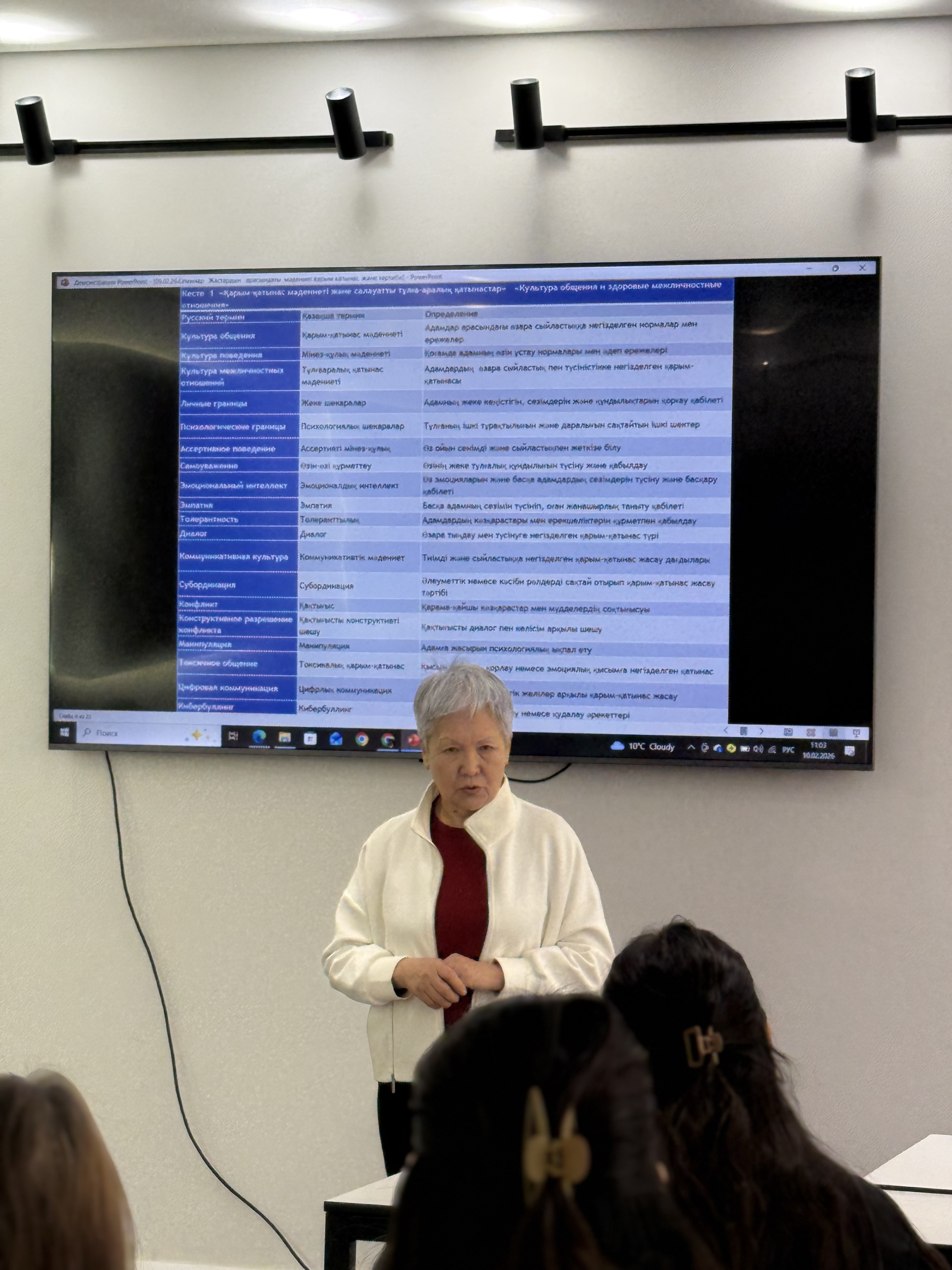 16.02.2026г д.п.н.профессор сектора Педагогики и психологии Арымбаева К.М. провела для студентов Университета «Мирас» лекцию на тему: «Культура общения и поведения: уважение, согласие и личные границы»