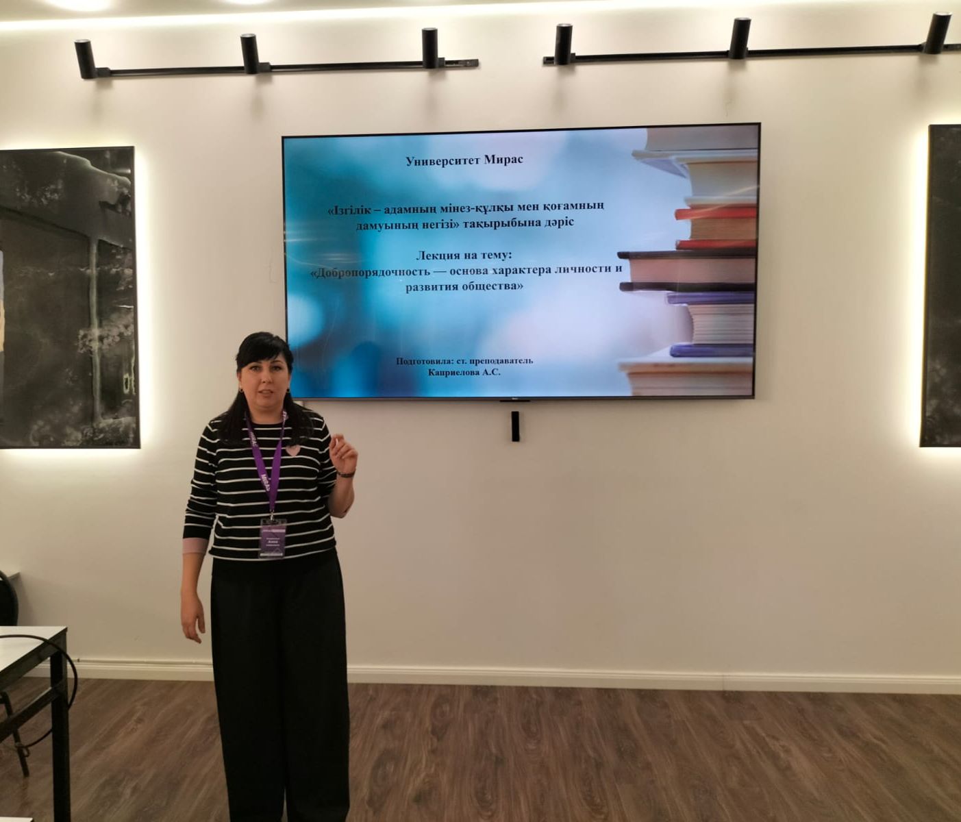 23.02.2026 старший преподаватель сектора иностранных языков университета Мирас Каприелова А.С. провела лекцию на тему «Добропорядочность — основа характера личности и развития общества» для студентов 1 курса.
