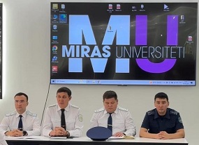 15 сентября 2025 года в университете «Мирас» прошла лекция на тему «Жағымды орта – жарқын болашақ кепілі», организованная Молодежным ресурсным центром совместно с представителями правоохранительных органов.